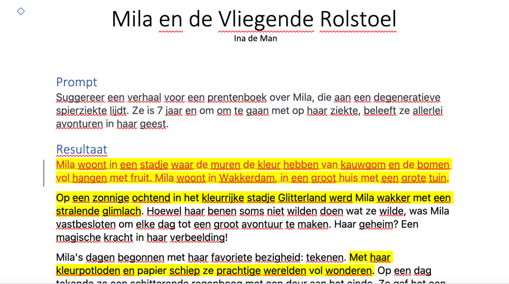 Het heeft me ook geholpen bij mijn eerste engelstalige jeugdboek. Hoewel ik gewend ben om professioneel Engels te schrijven, ben ik veel minder bekend met de woordenschat en zinsconstructie van een 12-jarige. Voor een aantal paragrafen heb ik aan Chatgpt gevraagd om het te herschrijven in een taal die gepast is voor een 12-jarige. Het systeem maakte de zinnen minder gecompliceerd en haalde te moeilijke woorden eruit. En dat was exact wat ik ook van een menselijke redacteur zou verwachten.