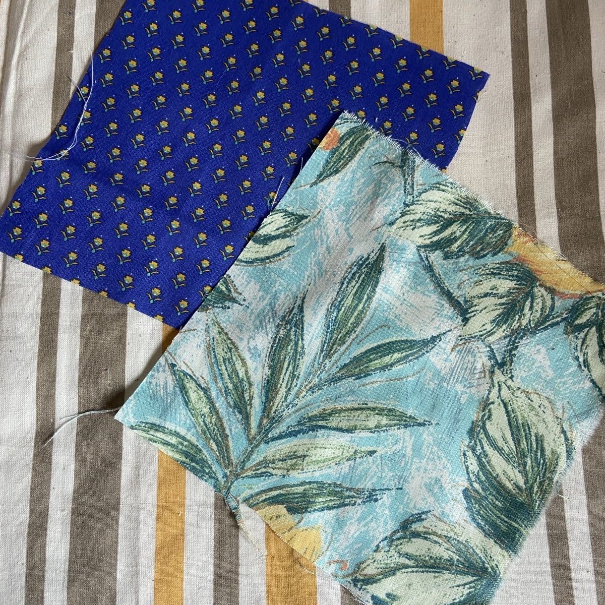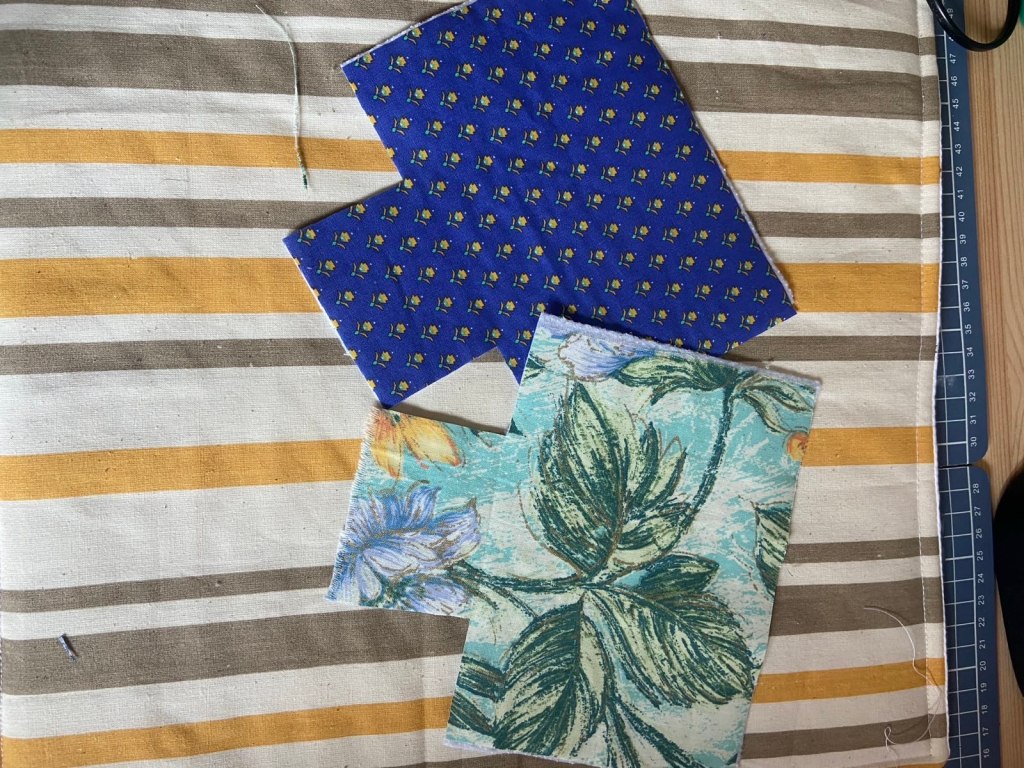 - Kies twee vierkantjes uit die je voor de buitenkant wil gebruiken. Strijk hier de tussenstof op vast.