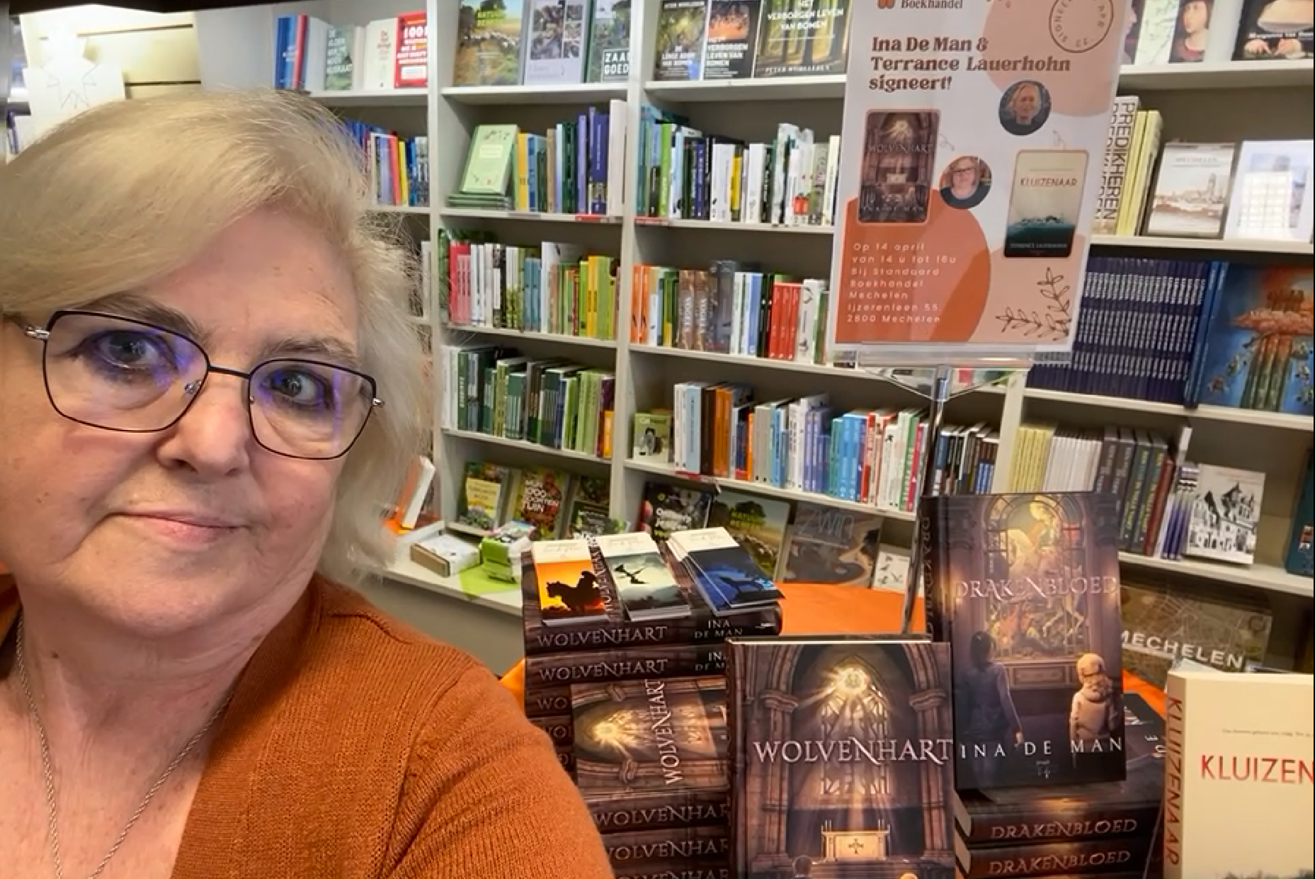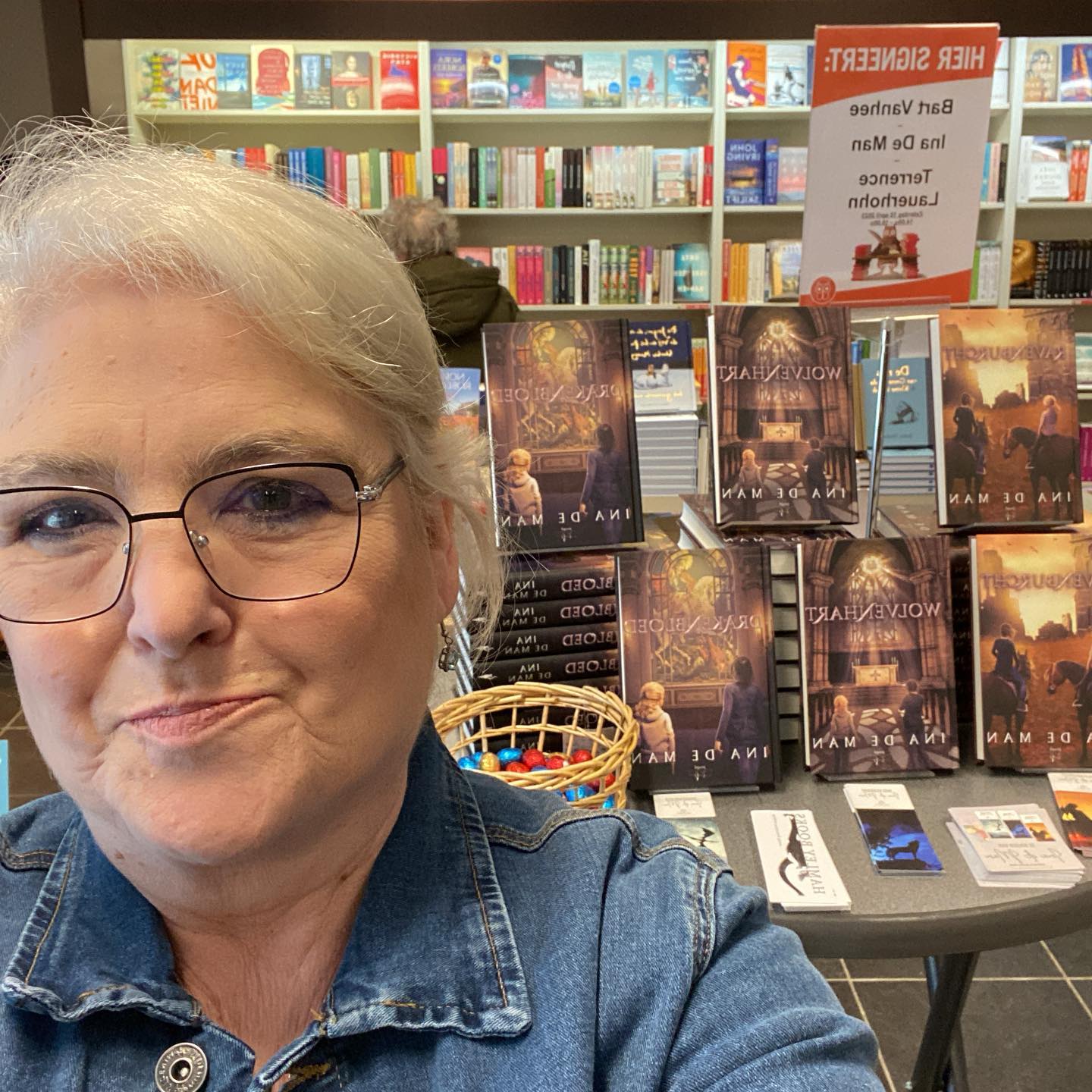 Ik ben niet zo geweldig dol op foto’s van mezelf, maar ik heb er mij ondertussen bij neergelegd dat van een auteur nu eenmaal gevraagd wordt om regelmatig op de foto te gaan met iets of iemand.